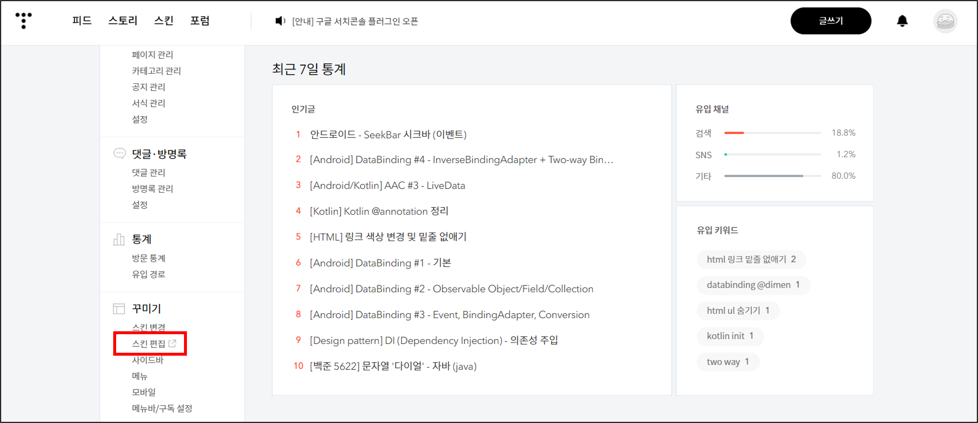 다른 스킨을 사용중이신 분들은 HTML / CSS 구조가 다를 수도 있습니다