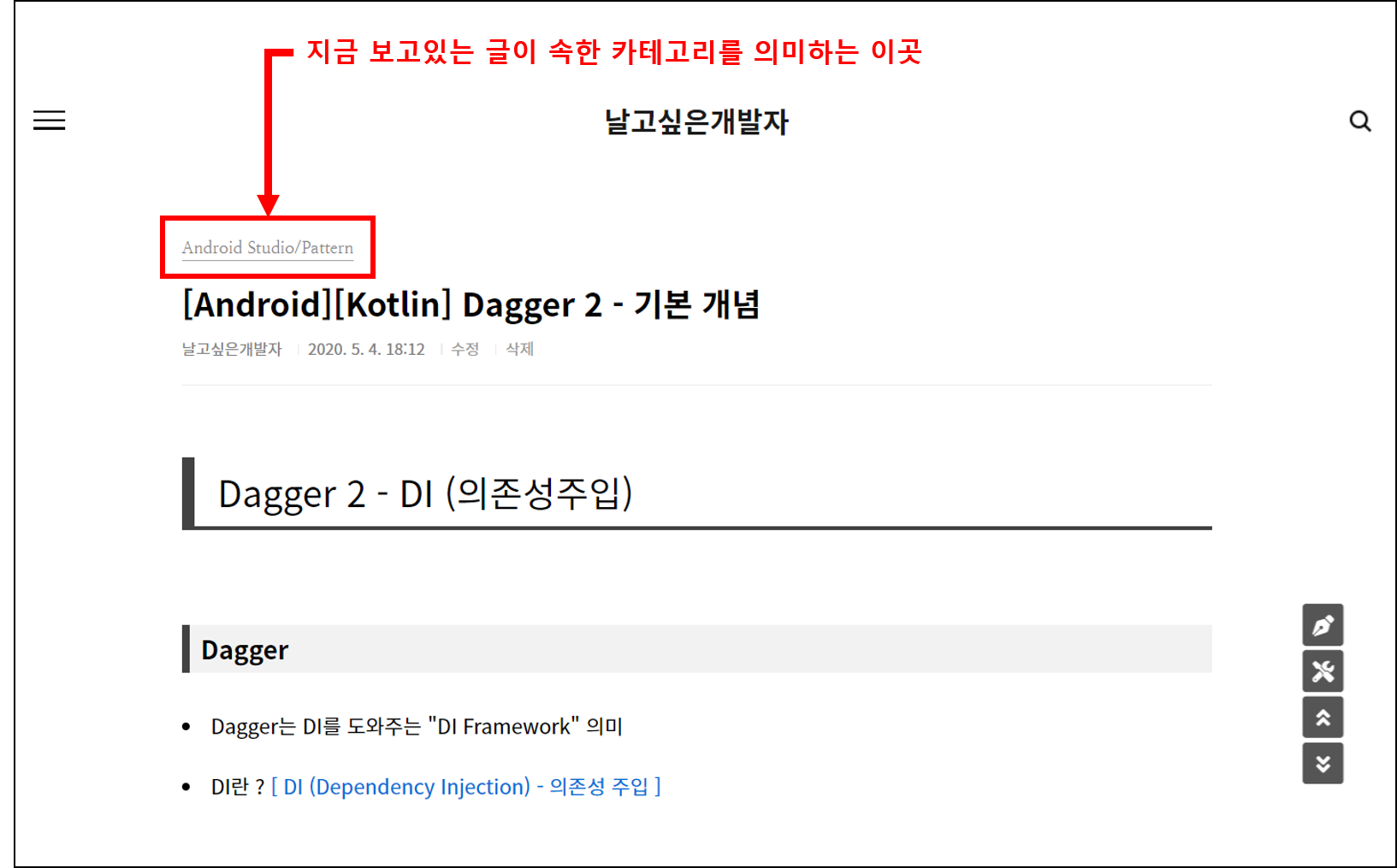 클릭해야하는게 번거로웠고, 문득 작성한 글 제목 상단부분에 해당 글이 작성되어있는 카테고리를 안내해주는 글자를