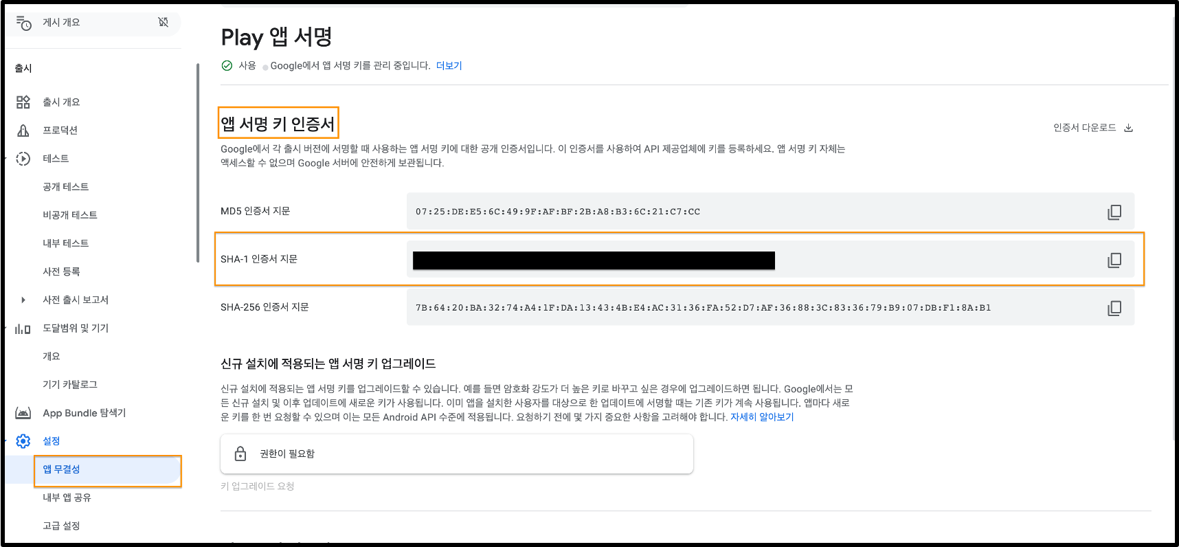 - Google Play App Signing 기능으로 인해 변경된 앱의 키해시를 카카오 데벨로퍼에 등록해줘야 한다