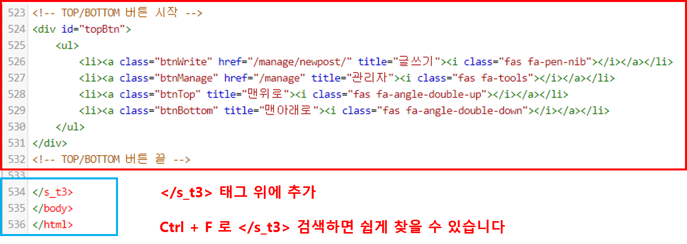 - HTML의 <body></body> 안에 있는 </s_t3> 바로 위에 추가